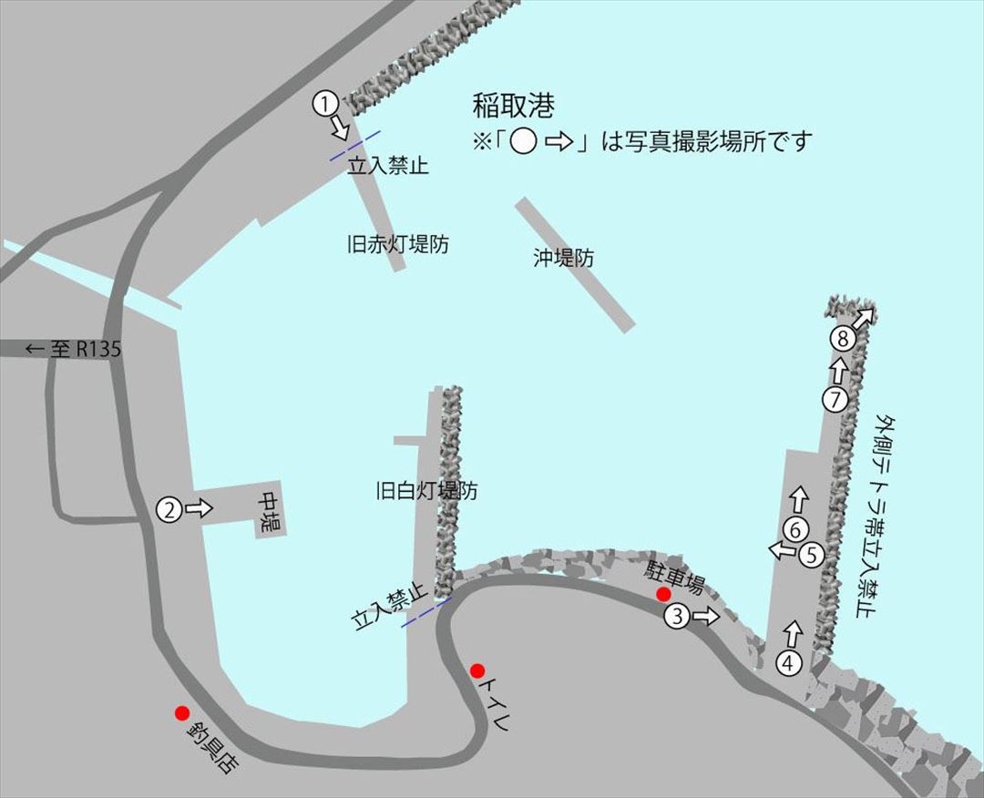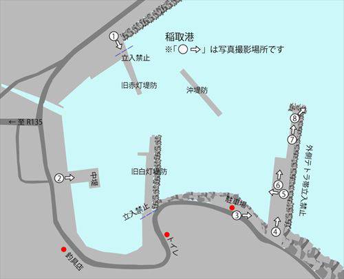 ルール等 | 立入禁止も多くあり、工事などでその場所も変化しているようです。 ※禁止区域など変更がある場合もあります。また工事などで地図と異なる場合もあります、必ず現地の案内板などで確認してからルールを守って釣行してください。 |